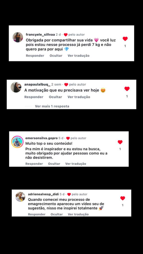 Essa experiência me ajudou a criar o Método TCM – uma abordagem de emagrecimento que vai além do físico, focando também na transformação mental. Hoje, junto com uma equipe de profissionais capacitados, meu objetivo é ajudar outras pessoas a alcançarem uma mudança de vida verdadeira, com a transformação do corpo e mente.